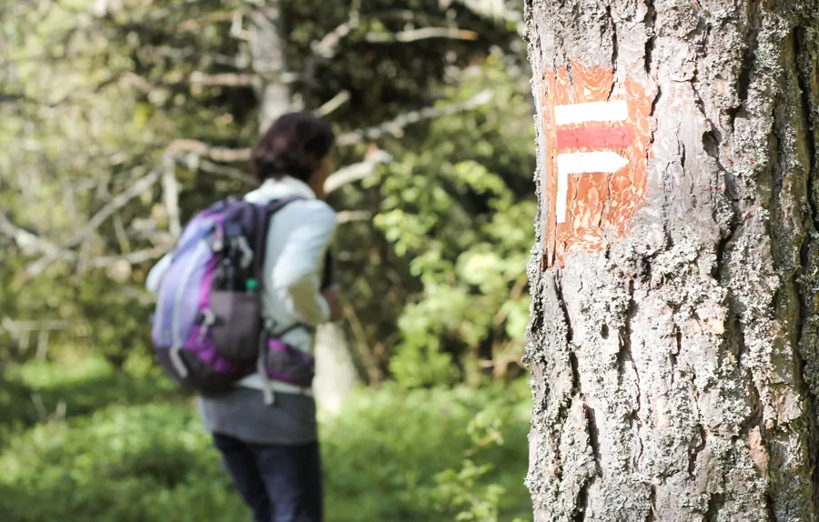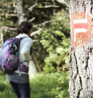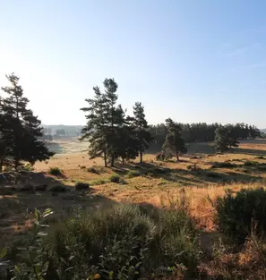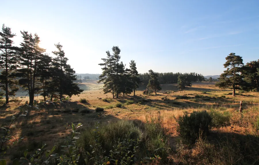 Depuis Aumont-Aubrac en « Terre de Peyre », comprendre terre de pierre, le chemin de Compostelle traverse de jolis bosquets de pins avant de rejoindre les portes de l'Aubrac à Prinsuéjols.
