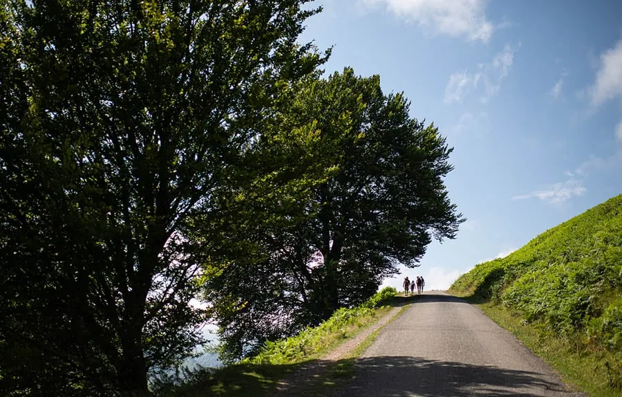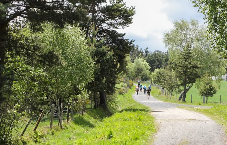 Depuis Nasbinals, cette étape se déroule au cœur du plateau de l'Aubrac où le rite ancestral de la transhumance est toujours vivace. Fin de randonnée à Aubrac, découverte des vestiges d'une ancienne Dômerie, monastère construit pour protéger les pèlerins qui traversaient l'Aubrac. Découverte possible de la cascade du Déroc, l'un des sites les plus remarquables d'Aubrac avec sa chute d'eau haute de 32 m qui cache derrière elle une grotte dont le plafond est formé de prismes basaltiques, et du lac de Saint-Andéol célèbre pour ses paysages cinématographiques.