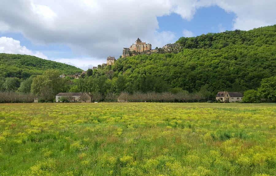 Vous vous rapprochez au fil des kilomètres de la rivière Dordogne, que vous aviez quittée à Bergerac. L'itinéraire du jour est marqué par la présence de différents châteaux. Au loin se profilent d'abord les tours du château des Milandes. Ce château datant du XV ème siècle a notamment été la résidence de la célèbre artiste de music-hall Joséphine Baker. Si une petite pause vous tente, le château est désormais ouvert à la visite. Puis, vient Castelnaud-la-Chapelle et son château fort bâti sur un éperon rocheux, offrant une magnifique vue sur la vallée de la Dordogne, faisant face à ses voisins de Beynac-et-Cazenac et de La Roque-Gageac. Court transfert pour rejoindre votre hébergement.