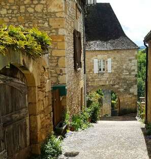 Court transfert depuis votre hébergement pour reprendre le chemin où vous l'avez arrêté la veille à Castelnaud-la-Chapelle. La journée est marquée par la découverte de Domme, classé comme l'un des plus beaux villages de France. La cité est une bastide de la fin du XIII ème siècle perchée sur les hauteurs d'une falaise vertigineuse et surplombant les méandres de la Dordogne. La ville fut le lieu de détention de Templiers en 1307, l'une des 3 portes de la ville a d'ailleurs conservé les traces de leurs inscriptions sur les murs. L'itinéraire continue jusque Limeuil (lieu-dit), puis court transfert en fin de randonnée pour rejoindre votre hébergement.