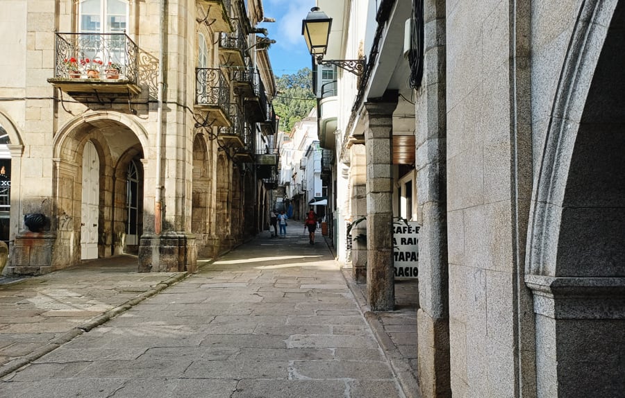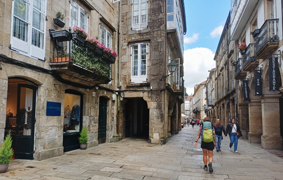 C'est la dernière étape du camino inglés. Vous quittez Sigueiro en traversant le pont qui surplombe le fleuve Tambre. Prenez une dernière bouffée de nature dans le "bosqueo encantado" (le bosquet enchanté) car l'arrivée dans la capitale galicienne se mérite avec la traversée peu agréable de la zone industrielle de Tambre. Mais très vite les vieilles pierres de la ville apparaissent, de ruelles en monuments historiques, vous avancez jusque la fameuse cathédrale de Santiago de Compostela.