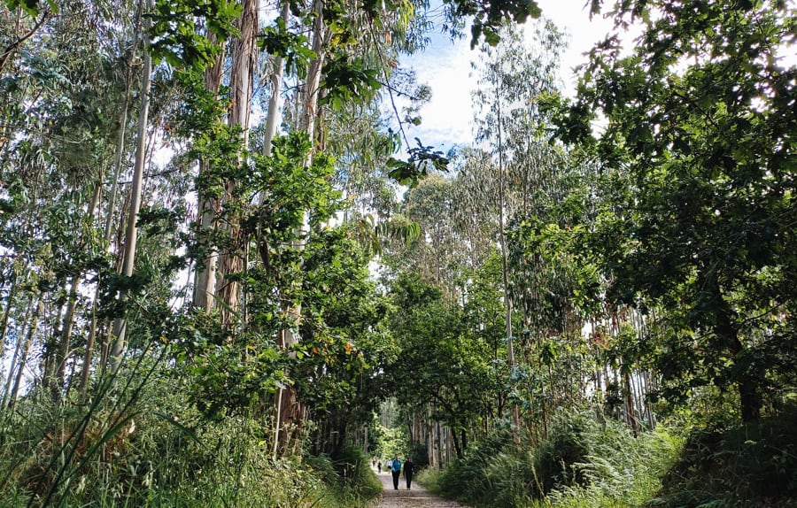 La sortie de la ville se fait par le pont d'As Cascas. C'est la journée la plus difficile de la semaine qui vous attend aujourd'hui avec pas mal de dénivelé positif. Le chemin quitte la côte pour passer essentiellement à travers forêts et routes intérieures. Ascension du point culminant de ce camino inglés : As Travesas, un peu avant Hospital de Bruma. Vous retrouvez les pèlerins venant d'A Coruña. Hospital de Bruma est une toute petite localité qui conserve des restes de l'ancien hôpital de pèlerins, d'origine médiévale. Selon les disponibilités, transferts possibles pour rejoindre votre hébergement.