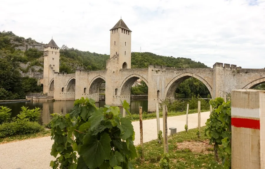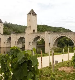 Panoramas sur les rives du Lot et ses écluses. Découverte de l'ancien chemin de halage et du village d'Arcambal avec son église du XVème siècle et son château du Bousquet inscrit aux Monuments Historiques. Variante par les rives du Lot pour l'arrivée à Cahors, ville nichée dans l'un de ses méandres. Découverte du célèbre pont Valentré, emblème de la cité et classé Patrimoine Mondial par l'UNESCO, et bien connu des jacquaires.
