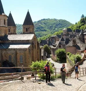 Arrivée en fin d'après-midi à Conques, perle de l'art roman nichée dans un écrin de verdure. Installation à l'abbaye Sainte-Foy en demi-pension. Si vous souhaitez visiter Conques et son abbaye, édifice majeur de l'architecture romane, nous vous conseillons d'arriver en fin de matinée ou en début d'après-midi.