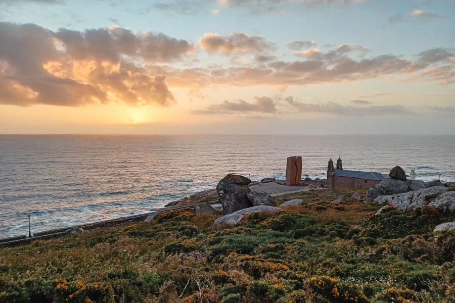 Un dicton populaire dit que « tout meurt à Fisterra, tout renaît à Muxía ». Pour celles et ceux qui souhaitent prolonger encore un peu, pourquoi ne pas finir en beauté, vue sur le soleil couchant depuis l'incroyable Sanctuaire de la Virgen de la Barca à Muxia ?