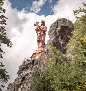 Arrivée au Puy-en-Velay et installation dans l'hébergement. Découverte de sa vieille ville, de sa cathédrale Notre-Dame du Puy de style roman et de son cloître du XIIème siècle, ainsi que du rocher Corneille sur lequel se dresse la statue de la Vierge Marie, haute de 16 m.