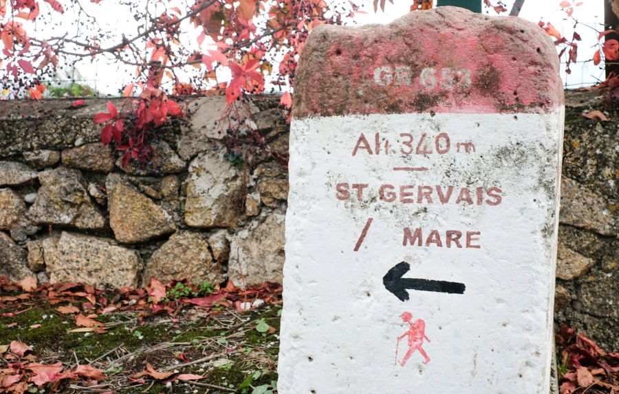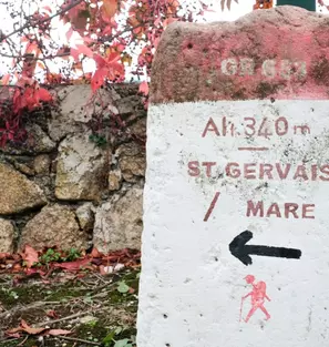 Court transfert jusqu'à la Séguinerie. Le GR 653 suit maintenant un cheminement en crête qui exige plus d'efforts. Départ le long de l'échine des Monts d'Orb jusqu'à la découverte de Saint-Gervais-sur-Mare. Le village marque la fin de l'étape entre ruelles en escalier, passages couverts, maisons des XVIème et XVIIème siècles qui rappellent le passé.