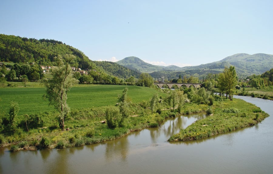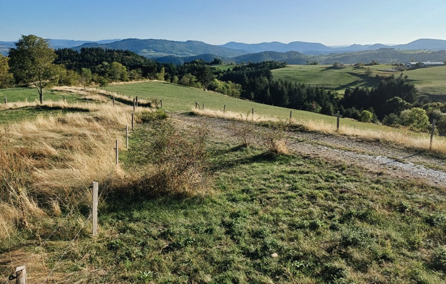 Depuis ces hauts plateaux, la vue par beau temps porte vers les monts du Velay et du Vivarais, vers le Parc naturel du Pilat et même jusqu'aux sommets enneigés des Alpes. En chemin, on change de département, de la Loire à la Haute-Loire, et de paysages. À Retournac, la Loire, ruban de vif-argent se taillant un chemin entre les volcans, nous sert de guide jusqu'à notre destination finale : Le Puy-en-Velay.