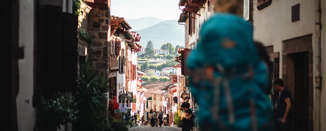 Arrivée à Saint-Jean-Pied-de-Port et installation à l'hébergement. Découverte de la vieille ville et de la célèbre rue de la Citadelle aux pavés usés.
