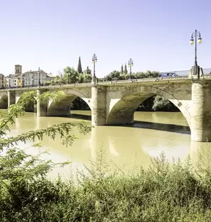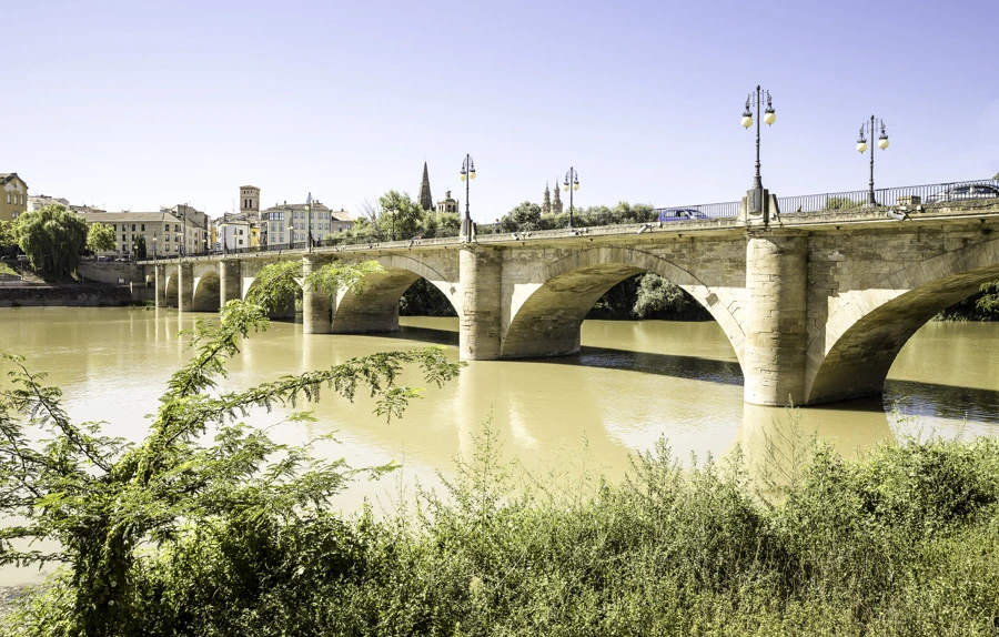 On aborde les rives de l'Elbro et la ville de Logroño après la traversée d'une grande plaine peu arborée.
