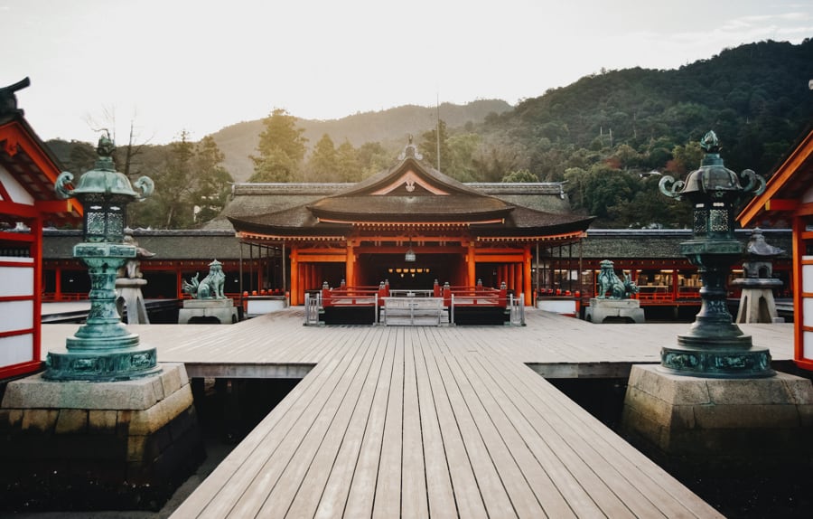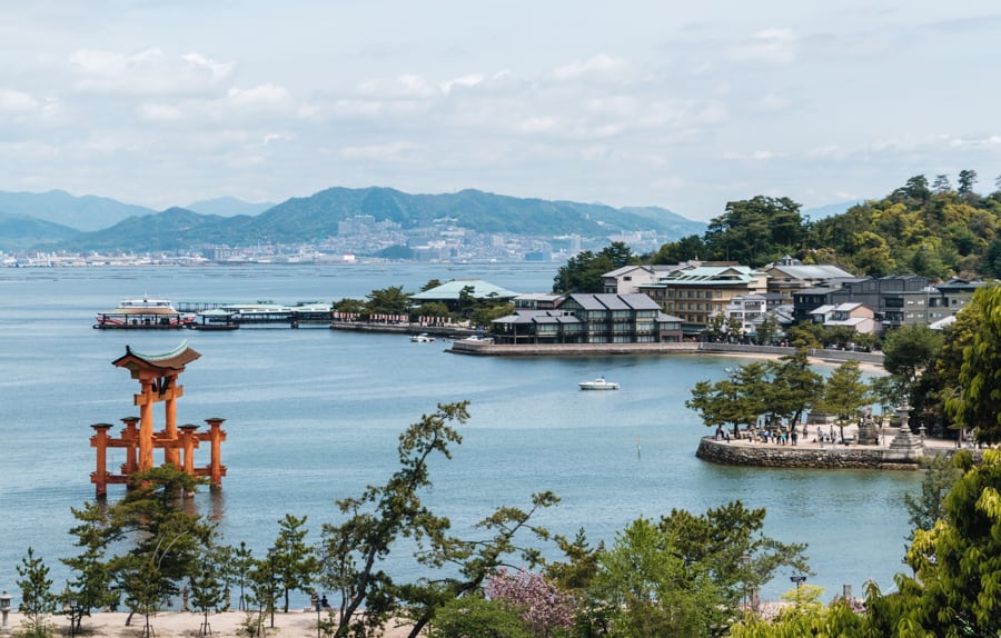 Vous pouvez également poursuivre la route jusqu'à l'île sacrée de Miyajima, où des cerfs se promènent en liberté. Miyajima est célèbre pour sa porte torii "flottante" ainsi que le sanctuaire d'Itsukushima, classé au patrimoine mondial de l'Unesco. Le mont Misen, occasion d'une dernière randonnée, offre quant à lui de magnifiques points de vue sur la mer intérieure.