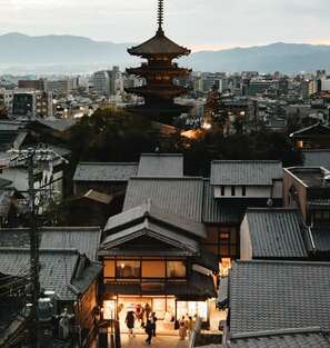 Arrivée à Osaka et transfert en taxi collectif pour la ville de Kyoto. Installation dans votre hébergement où vous récupérez le reste des documents de voyage (billets de train, etc.). Découverte en liberté de l'ancienne capitale impériale de Kyoto.