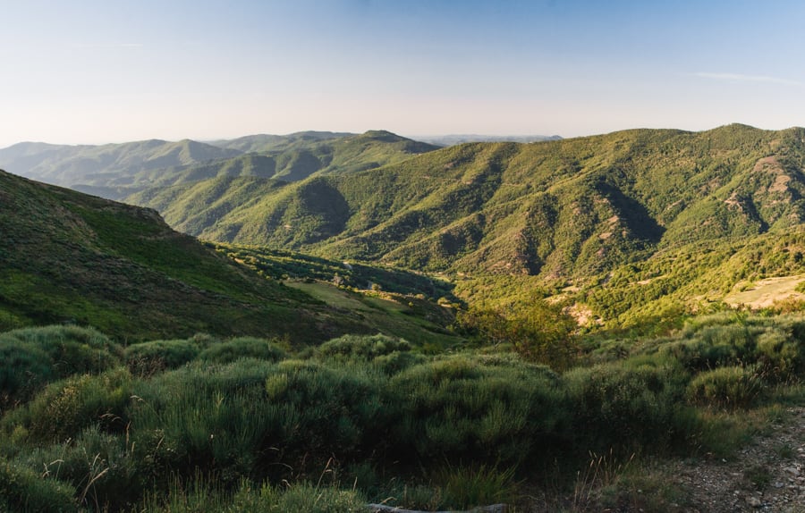 Cette étape plonge au cœur des Cévennes schisteuses, les Cévennes des "serres" acérées et des "valats" profonds. En montant au Plan de Fontmort, les couleurs dominantes sont le vert et le noir et selon la saison le jaune des genêts en fleurs ou le mauve des bruyères.