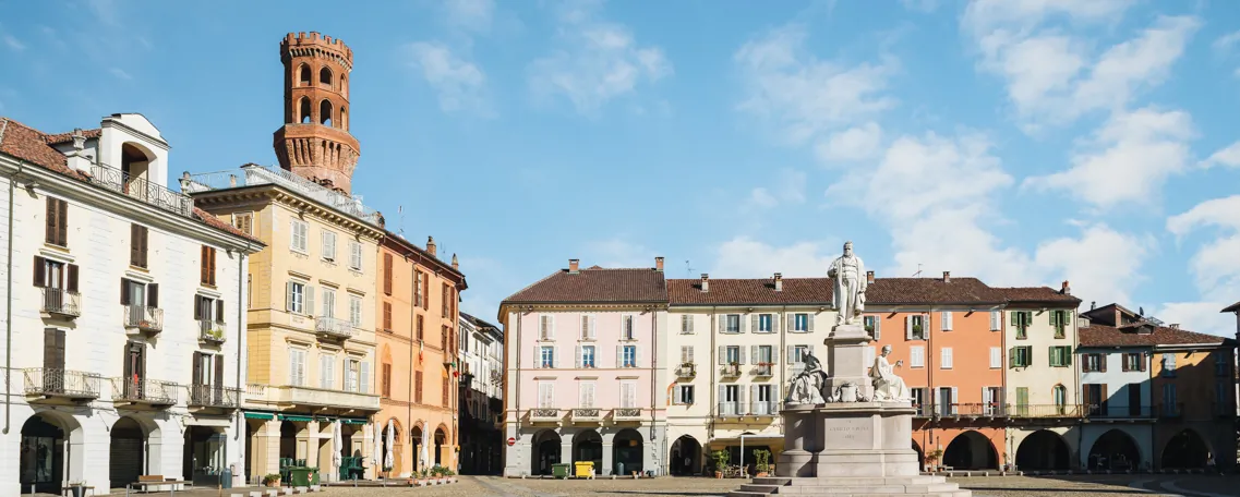 Le parc naturel de la rivière Sesia protège un environnement fragile, humide, idéal pour de nombreuses cultures et notamment celle du riz. À l'époque romaine, le bourg de Robbio était un important comptoir pour le commerce entre Rome et la France. Train pour Vercelli (15 min). Dîner libre et nuit à Vercelli.