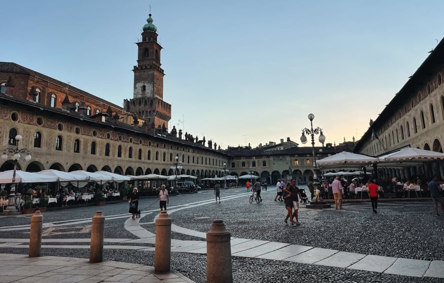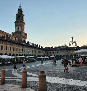 Trajet en train jusqu'à Mortara où vous commencez la randonnée. Au Moyen Âge, la famille la plus puissante était la famille Visconti. Après avoir conquis Milan, la famille étendit son pouvoir sur les champs et territoires autour de la rivière Tessin. Le château de Garlasco est le témoin de l'importance de la ville durant la période des Visconti. Bus pour Vigevano (30 min). Dîner libre et nuit à Vigevano.