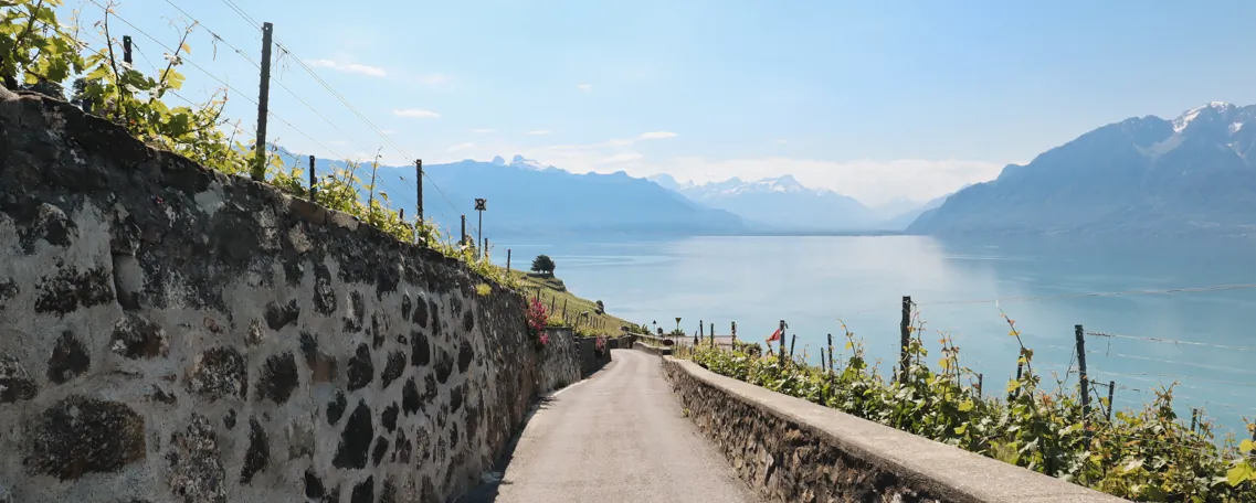 Depuis les rives du lac Léman et la vallée du Rhône, votre périple vous emmène tout d'abord au cœur du vignoble en terrasses du Lavaux, site inscrit au patrimoine mondial de l'UNESCO et qui offre une vue exceptionnelle sur le lac. Puis, vous remontez peu à peu la vallée du Rhône jusqu'à Martigny, en direction de l'Italie. De là commence votre montée en direction du col du Grand Saint Bernard, point d'orgue de votre itinéraire le long de la Via Francigena suisse. La Via Francigena traverse la Suisse en franchissant le Jura et les Alpes. Elle offre un paysage varié et certainement les étapes les plus spectaculaires de tout l'itinéraire européen.