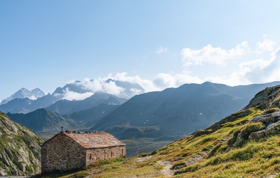 Il s'agit certainement de l'étape la plus symbolique de la partie suisse de la Via Francigena. L'accès au col se fait par le chemin qui a vu passer toute l'Europe depuis 2 000 ans. De nombreux sites archéologiques jalonnent la montée, notamment à L'Hospitalet et au Plan de Barasson.