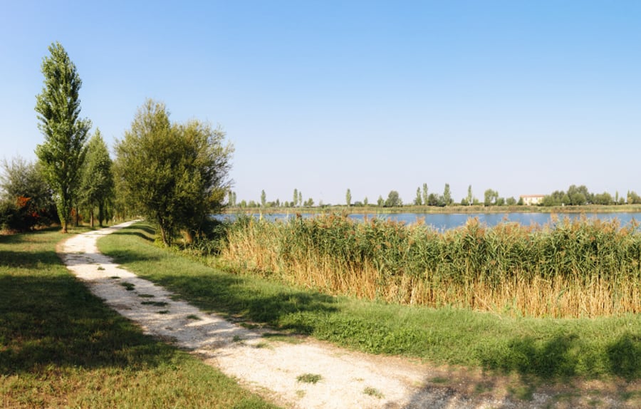 Variante : Sans la traversée du Po en bac : 28 km - Dénivelés positifs et négatifs : 50 m - 7 h de marche environ