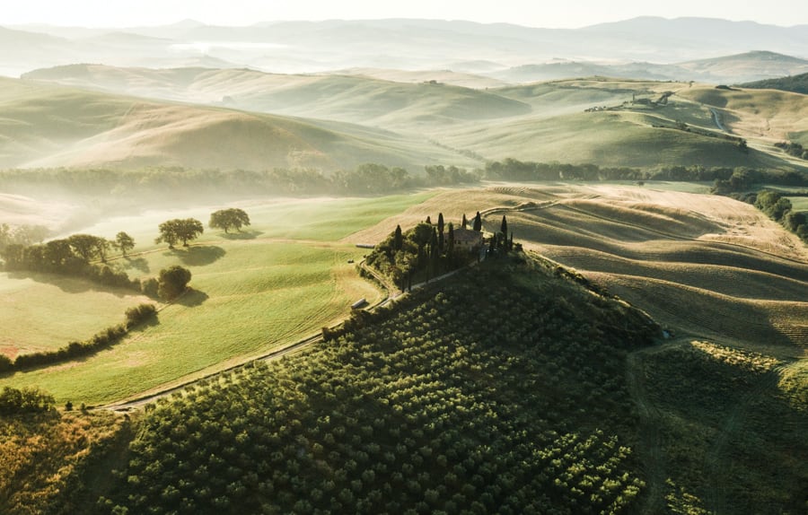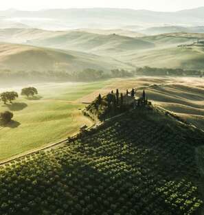 L'itinéraire emprunte des chemins de terre blanche caractéristiques de la Toscane, alternant les crêtes de Sienne, pentes douces de la Vallée de l'Arbia, et sentiers le long des cultures de blé. Quelques rangées de cyprès viennent compléter le décor de cette belle région, qui peut se parcourir tout aussi bien au printemps, en été ou en automne. Fin de la randonnée à Quinciano, transfert retour vers Sienne où vous passez une deuxième nuit consécutive.
