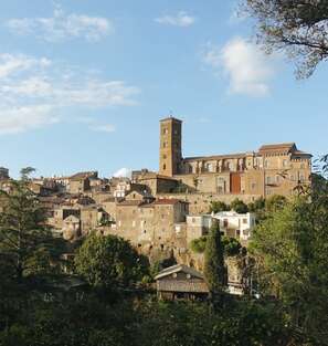 Pour cette dernière partie de la Via Francigena, vous traversez le Lazio, une région agricole qui recèle des lacs volcaniques et des champs d'oliviers d'une rare beauté. En poursuivant l'ancienne Via Cassa d'origine romaine, vous pouvez visiter des villes fortifiées comme Viterbo, la nécropole étrusque et l'amphithéâtre romain de Sutri, les petites églises médiévales de Vetralla et Campagnano... Parmi les denses forêts de chênes et leurs sentiers, au cœur d'un paysage bucolique, vous découvrez les ruines d'abbayes et de tours fortifiées au cœur de fermes auberges, où est possible une dégustation des produits typiques de la région. L'arrivée Place Saint-Pierre de Rome clôt votre parcours à travers la Ville Éternelle.